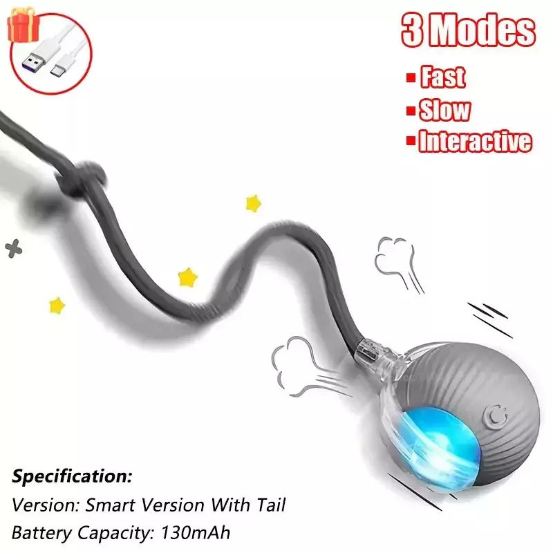 Novo gato interativo bola brinquedo automático rolamento bola falso cauda recarregável inteligente pet brinquedo elétrico cão gato treinamento imitar mouse
