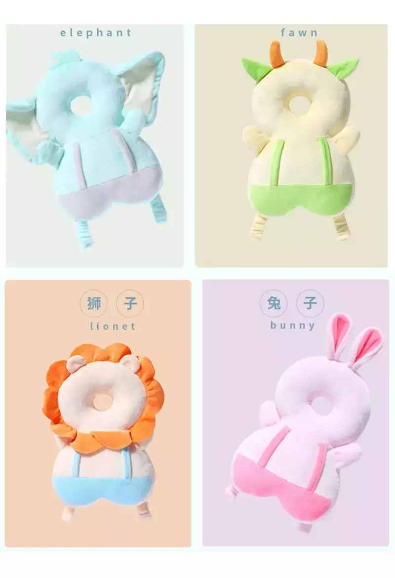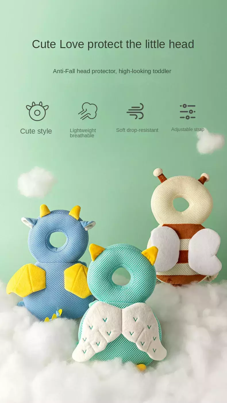 Características do produto: Esta almofada de cabeça de bebê tem um design mais razoável.Protege a cabeça e os ombros.Protege a cabeça ao mesmo tempo que é respirável e não abafado.O bebê ficará mais estável quando caminhar sem pressão nas costas.O produto é novo e fofo, pode evitar quedas durante o dia e cuidar da segurança do bebê; à noite, pode ser usado como uma boneca calmante para acalmar o sono do bebê.É a melhor escolha para bebês durante o período de crescimento e também é um pequeno ajudante poderoso para as mães.