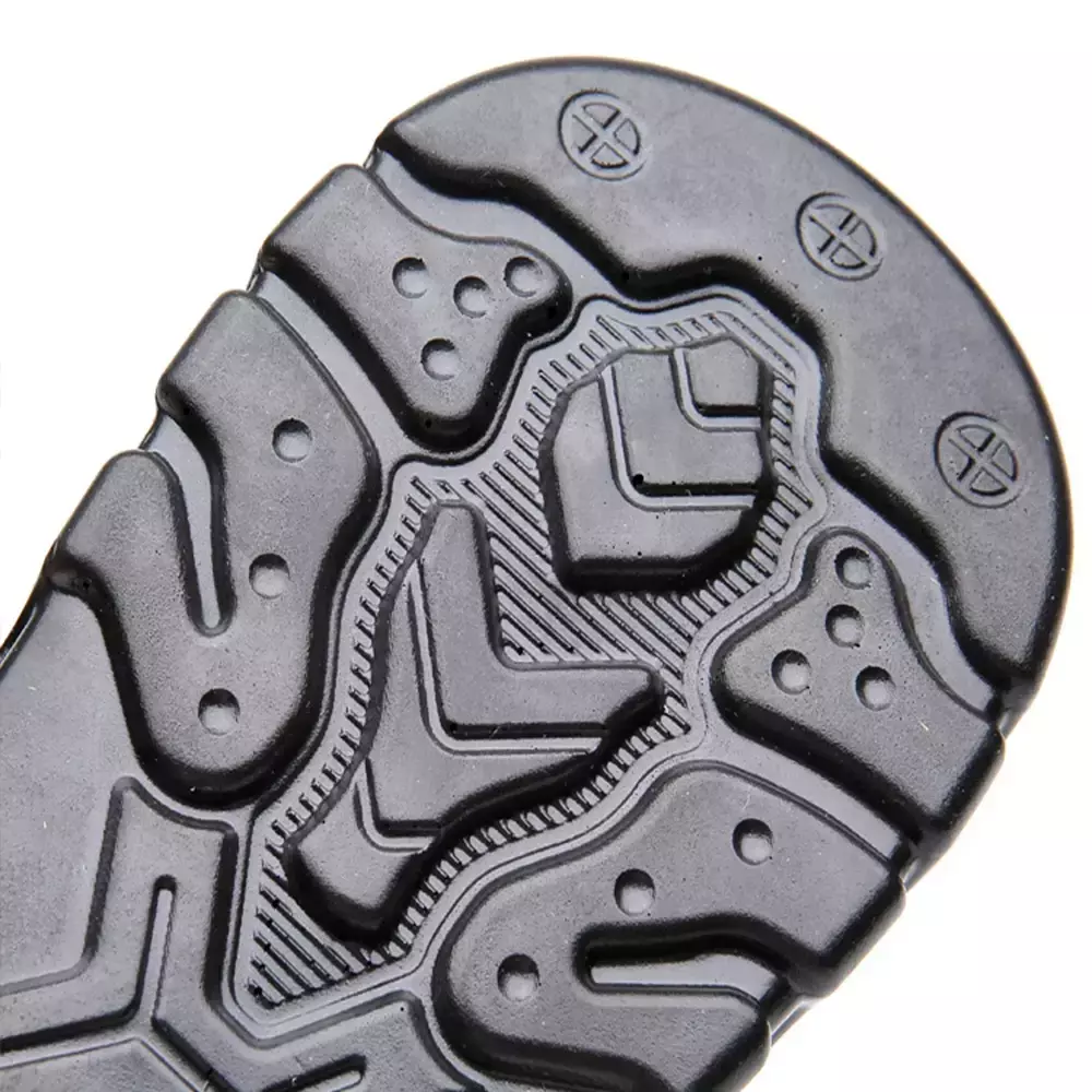 Sola de borracha antiderrapante com textura de aderência total e proteção fechada proporcionam garantia de segurança durante todo o dia.